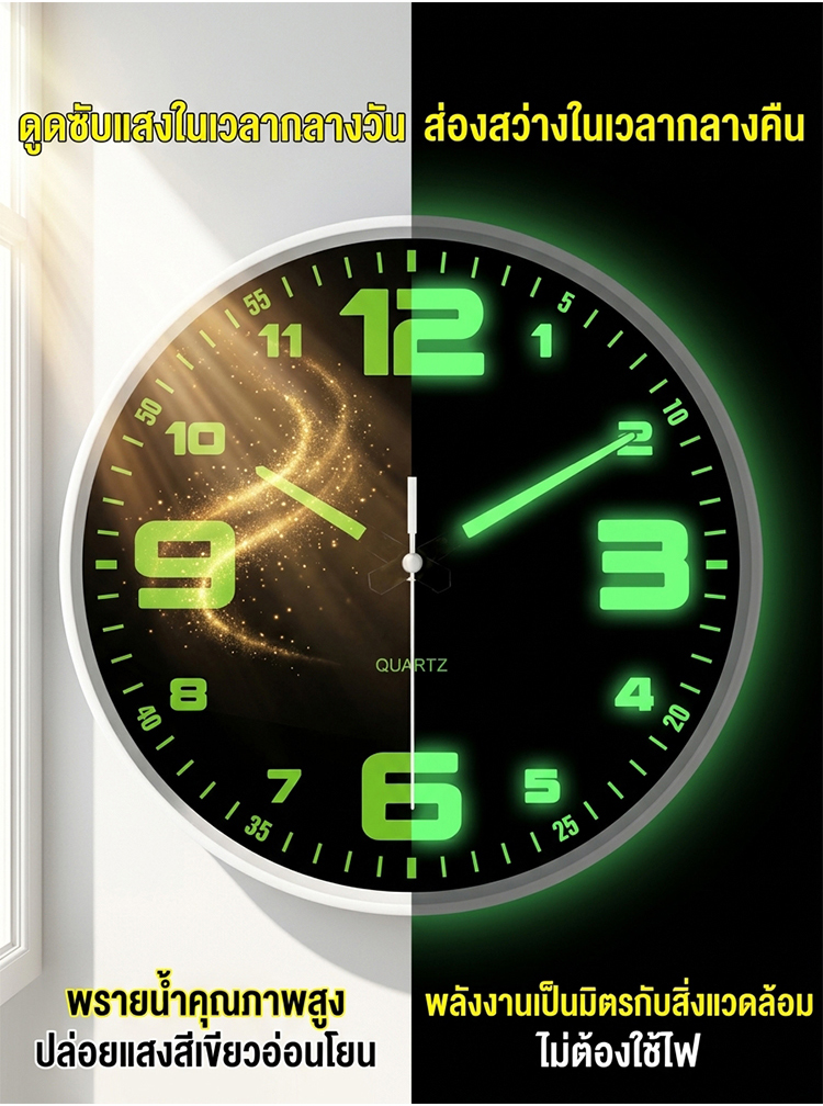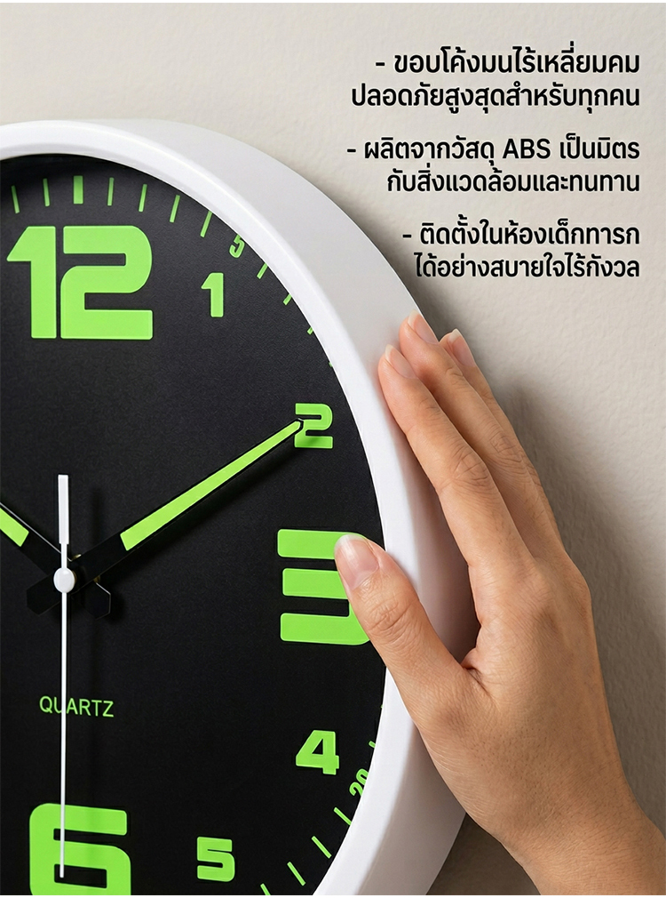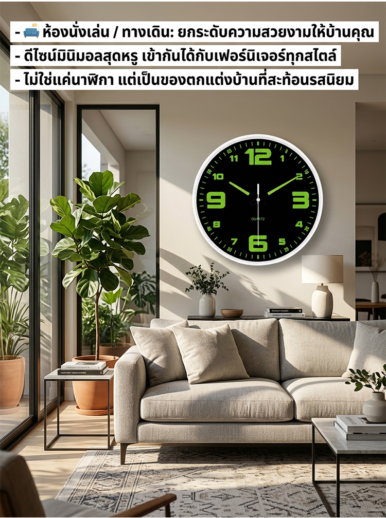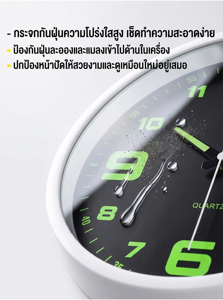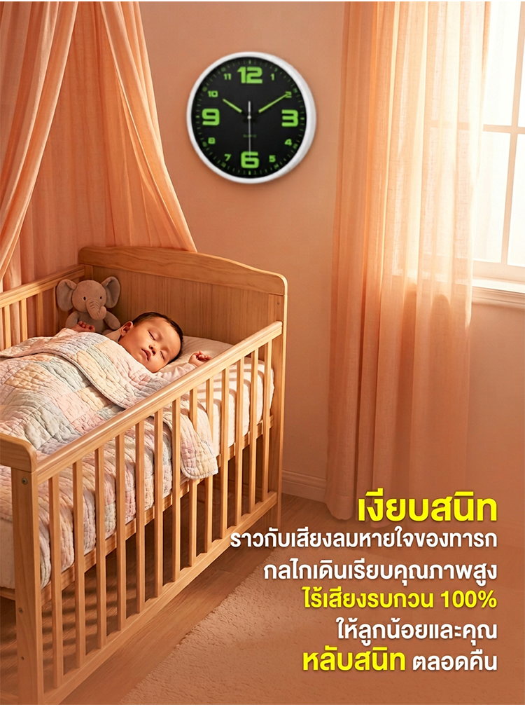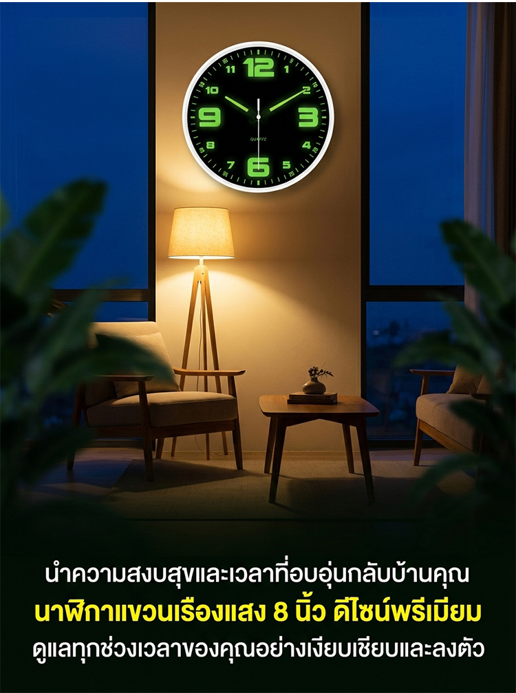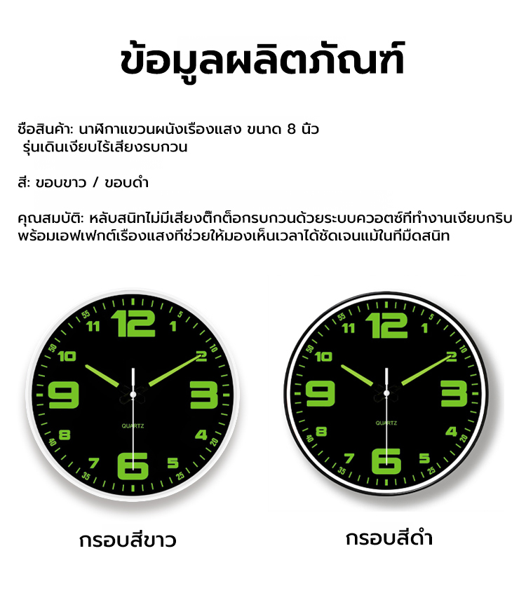 นาฬิกาแขวนผนัง 8 นิ้ว รุ่นเงียบพิเศษ | มีพรายน้ำสว่างกลางคืน | ดีไซน์มินิมอล ไม่รบกวนการนอน